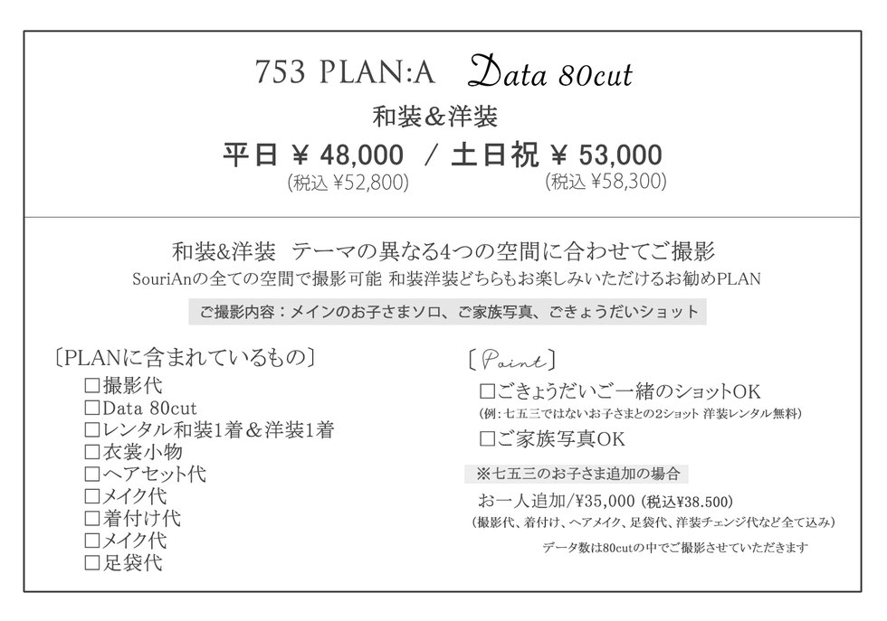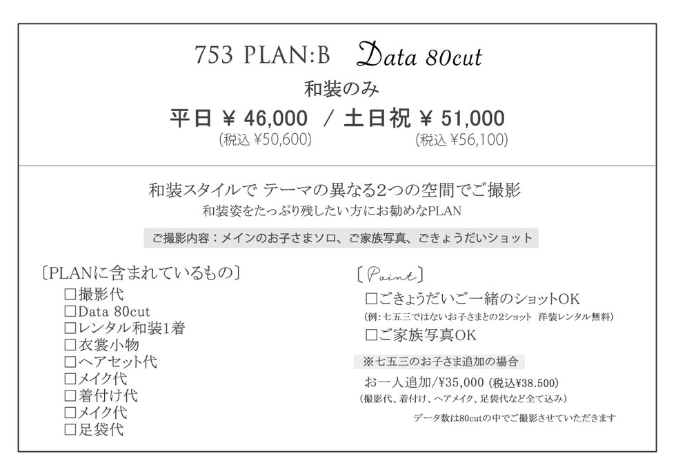 ※PLAN B (和装のみ)は Room【Un】【Deux】でのご撮影となります